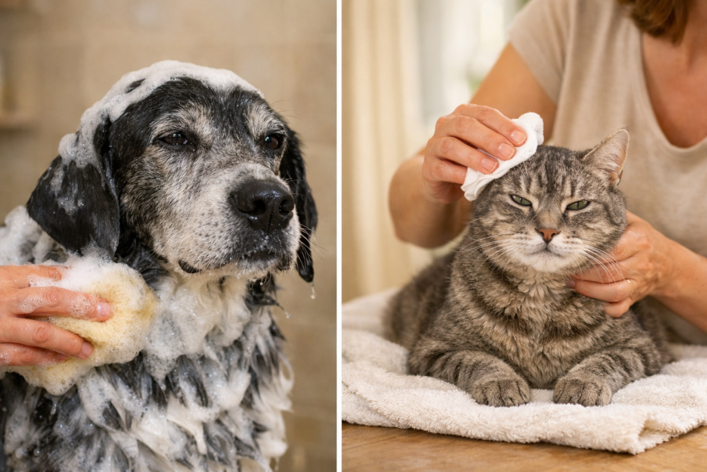 Soluciones para mantener limpios a nuestros perros y gatos senior sin irritaciones
